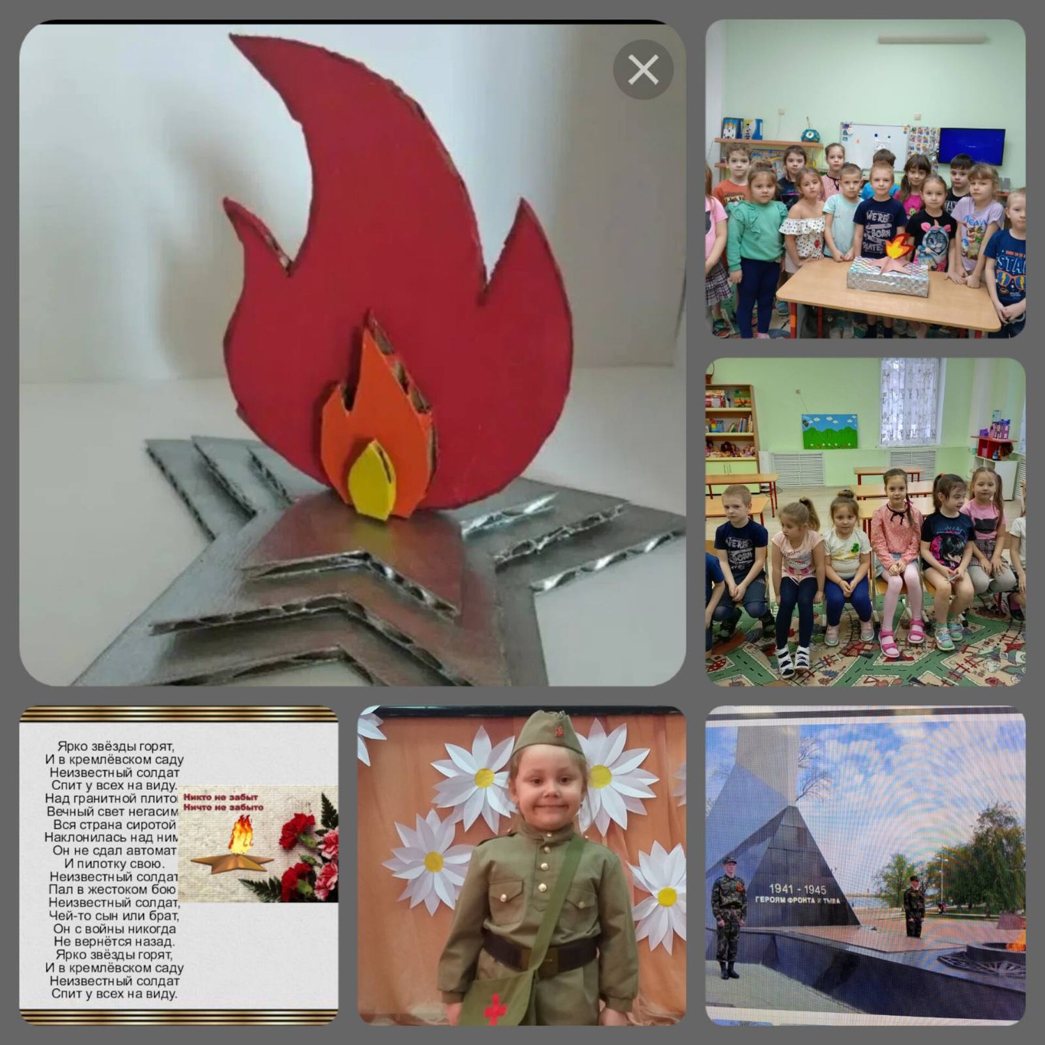 В целях патриотического воспитания дошкольников, предупреждения фактов осквернения или повреждения воинских захоронений, а так же памятников и мемориальных комплесов , увековечивающих память погибших при защите Отечества, в подготовительной к школе группе 13 было проведено занятие «Вечная память героям». Детям была представлена презентация о памятниках героям Великой отечественной войны в Энгельсе, о вечном огне. Совместно с воспитателями дети своисми руками сделали макет Вечного огня . В конце занятия было прочитано стихотворение Неизвестный солдат. |